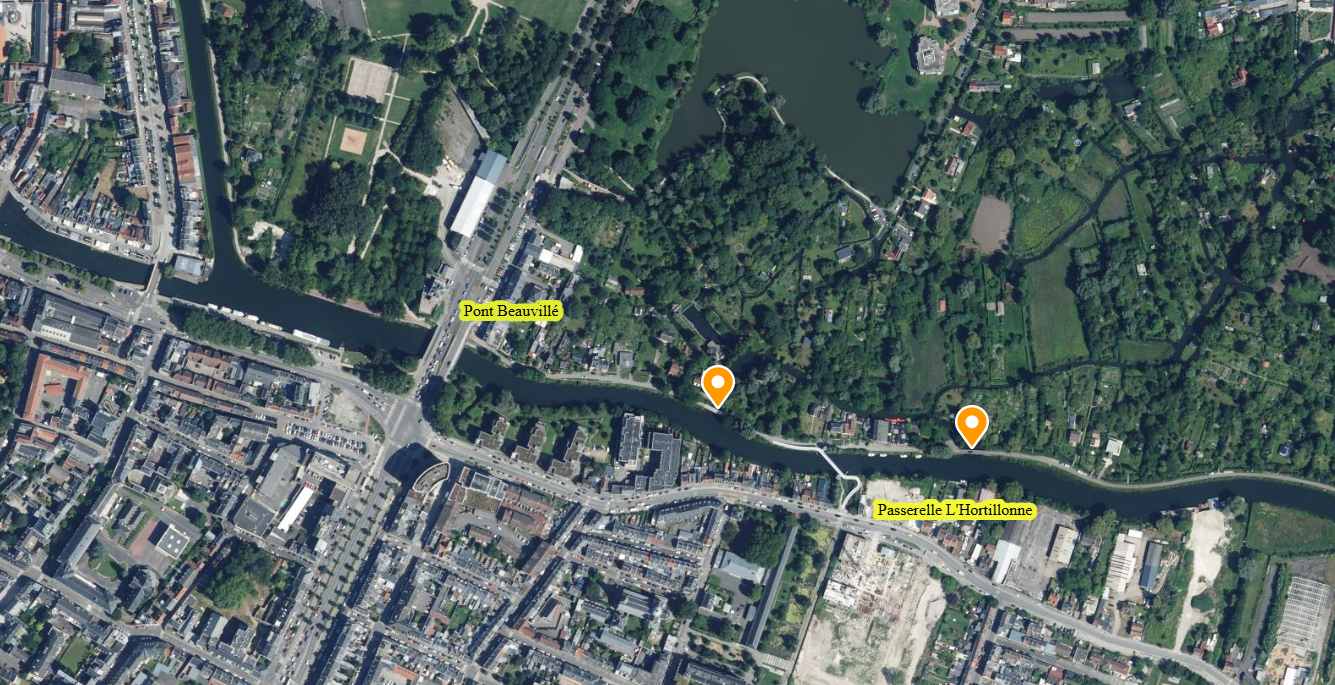 La Direction du Fleuve et des Ports, du Conseil Départemental de la Somme, va réaliser des travaux de sécurisation et modernisation des garde-corps sur 2 passerelles le long du chemin de halage (cf plan ci-dessous).